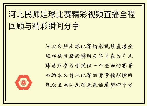 河北民师足球比赛精彩视频直播全程回顾与精彩瞬间分享
